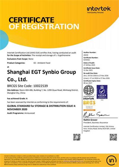 在越南验厂网老师专业技术、全程一对一跟进耐心细致辅导以及公司全体员工配合下,一次性顺利通过RBC认证并取得A级证书,为将来公司发展奠定了良好的发展基础,既开拓了市场同时也增加了消费者对公司的信赖,在这里再次祝贺上海麦角硫因科技有限公司2025年一次性成功通过